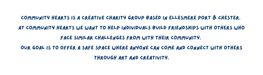 HomepageWhat’s on?Support UsMental Health ResourcesMembers OnlyHeARTISTSGovernanceContact UsAbout Us Instagram LinkedIn Amazon Community HeARTs | 6 Hawkins View, Chester, CH3 7LU | UK Charity Number: 1214769